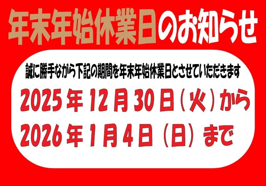 誠に勝手ながら、弊社では下記の通り年末年始休業とさせて頂きます。何かとご迷惑をおかけいたすことと存じますが、何卒ご理解の程よろしくお願い申し上げます。◆◆◆◆◆◆◆◆◆◆◆◆◆◆◆◆◆◆◆◆◆◆◆◆◆◆◆◆建材部 2019年12月28日(土)〜2020年1月5日(日) 尚、6日より平常通り営業させていただきます。墓石部 2019年12月28日(土)〜2020年1月4日(土) 墓石部は5日(日)から営業させていただきます。◆◆◆◆◆◆◆◆◆◆◆◆◆◆◆◆◆◆◆◆◆◆◆◆◆◆◆◆