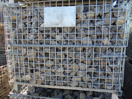 グレー、黒っぽい割栗です。岩石によって褐色の部分も含まれます。
